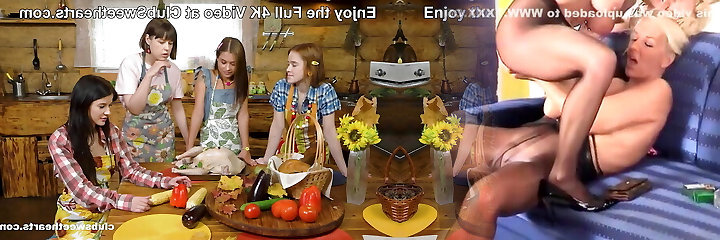 10:18Orgy Feast: Four Horny Women Stuffing Their Tits and Pussies with Hot Food!